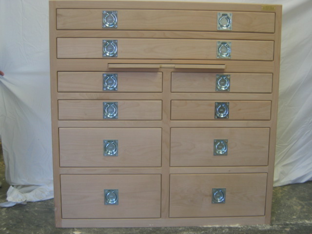 Based on the same footprint as the five foot standard unit, this unit has eight standard height drawers, plus five gel/prop drawers, and designed to store and organize lighting gels as well as standard size drawers for work needs. It is great storage around stages, and on those larger 30', 40' or 53' production trailers!